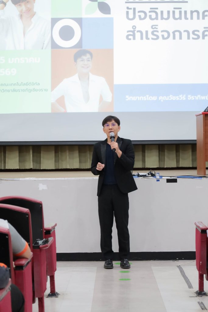 คณะเทคโนโลยีดิจิทัล ได้จัดกิจกรรม ปัจฉิมนิเทศก่อนสำเร็จการศึกษา ให้แก่นักศึกษาชั้นปีสุดท้าย เมื่อวันที่ 25 มกราคม 2569คณะเทคโนโลยีดิจิทัล มหาวิทยาลัยราชภัฏเชียงราย เพื่อเตรียมความพร้อมให้นักศึกษาในการก้าวเข้าสู่โลกแห่งการทำงานอย่างมั่นใจ และเสริมสร้างความรู้ความเข้าใจเกี่ยวกับสถานการณ์ตลาดแรงงานในปัจจุบัน